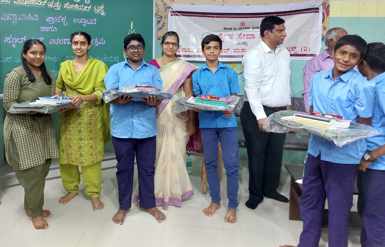 The top scorers of recent SSLC and PUC were feliciated. School kits were also distributed to student of govt schools. In total 1000 kits will be distributed in the next month to student of govt and aided school.