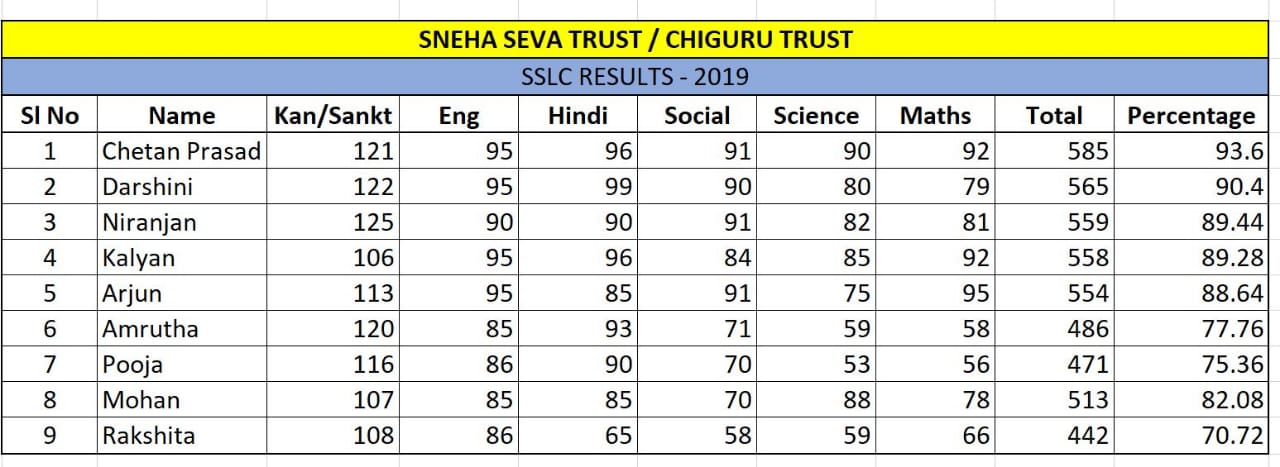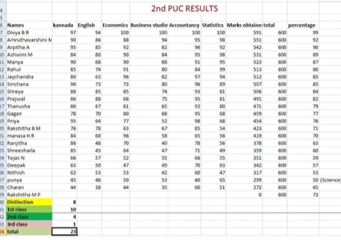 Dear All, Very pleased to inform you that, in the 2nd PUC results announced today, out of 11 students supported by Trust under Vidya Vahini project, 10 students have passed with First Clss and 1 student with second class.