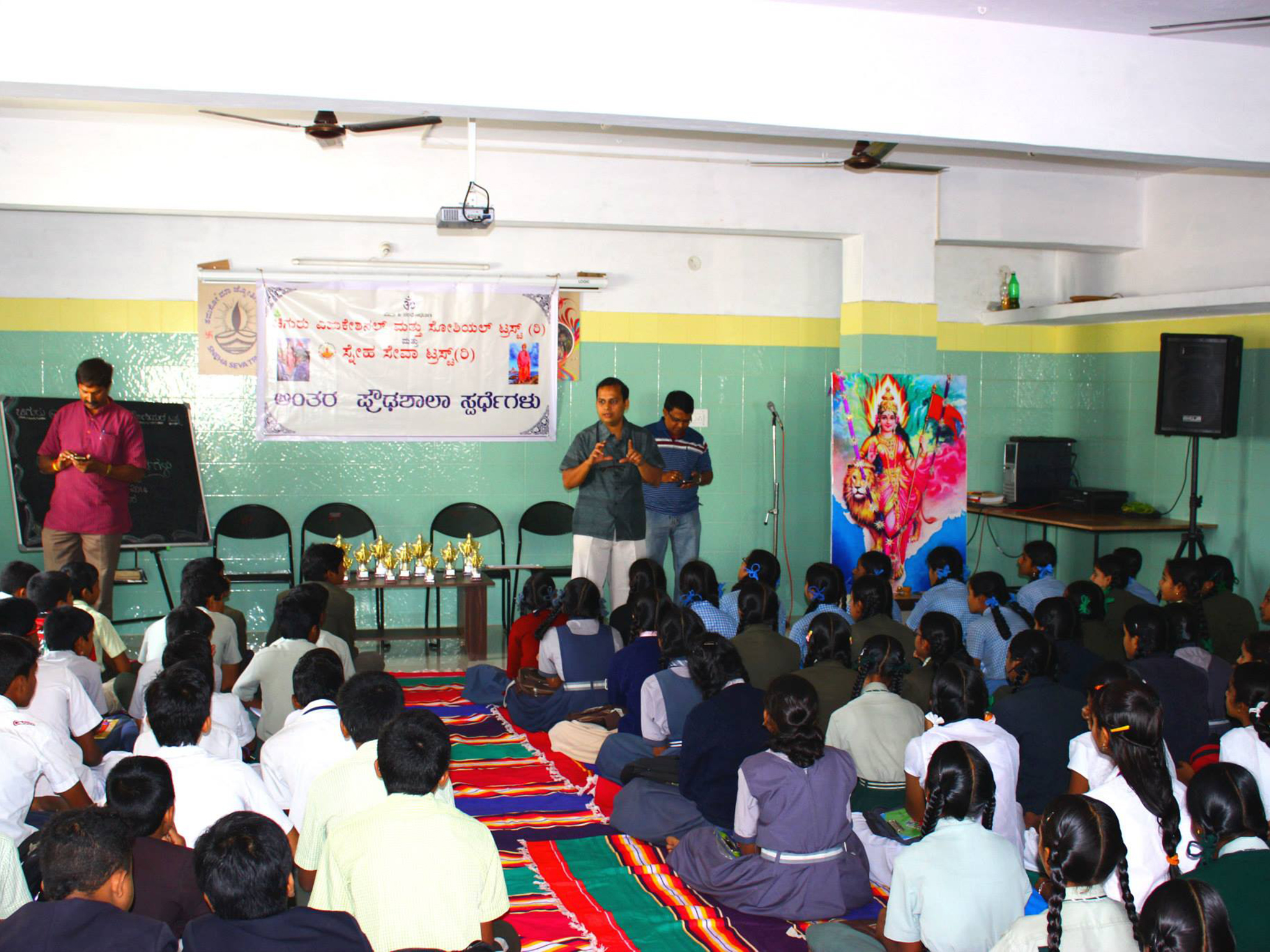 Inter high-school competitions were held at Trust’s premises. 186 students from 15 aided and government schools participated with great enthusiasm in 5 categories of competitions (Skit, Drawing, Speech, Kannada writing, Kagga/Vachana